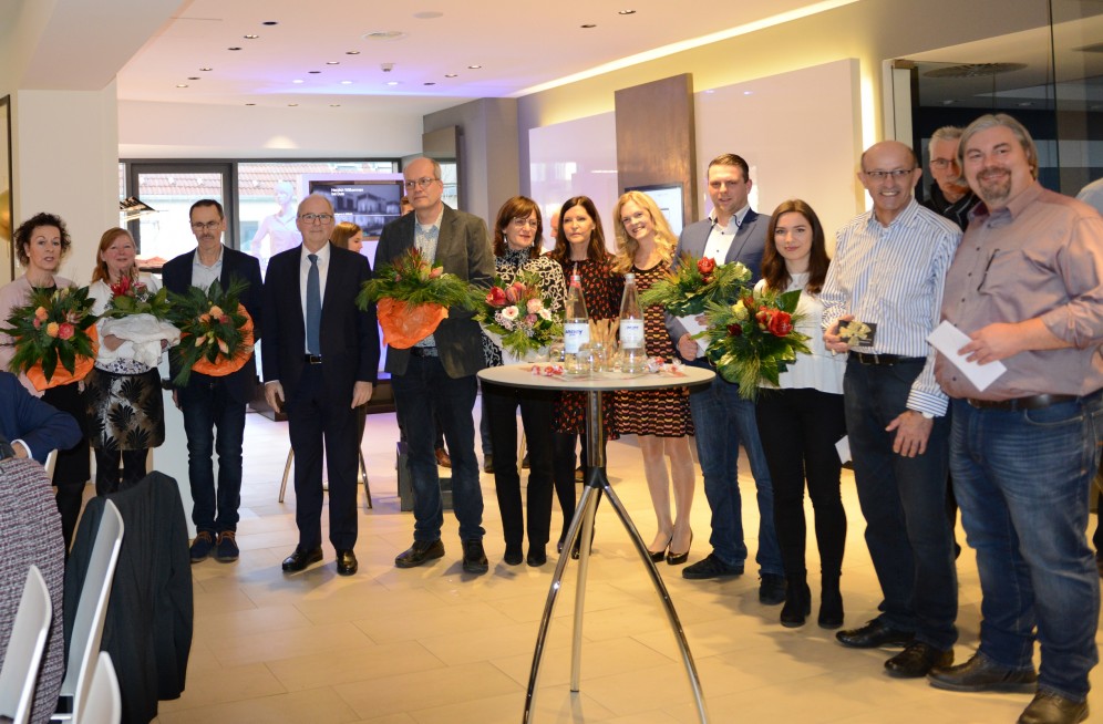 Zusammen mit seiner Frau Marisa Dustmann und seiner Tochter Carolina Birkenfeld-Dustmann gratulierte er zu erfolgreicher Zusammenarbeit. Claudia Andrae, Kai Hauke, Wolfgang Ristow und Nicole Schröder können auf zehn gemeinsame Jahre zurückblicken, Martin Rohde bereits auf 25. Rainer Orzech verabschiedete sich nach 57-jähriger Betriebszugehörigkeit in den Ruhestand. Zwei weitere Mitarbeiter begleiteten das international tätige Ladenbauunternehmen fast 50 Jahre, Brigitte Schäfer und Michael Bartholmey wurden nach 47 und 49 Jahren herzlich verabschiedet. Auch Kornelia Schröder und Hans Reil dankte Familie Dustmann für 19 und vier Jahre erfolgreiche Zusammenarbeit bis zur Pension.